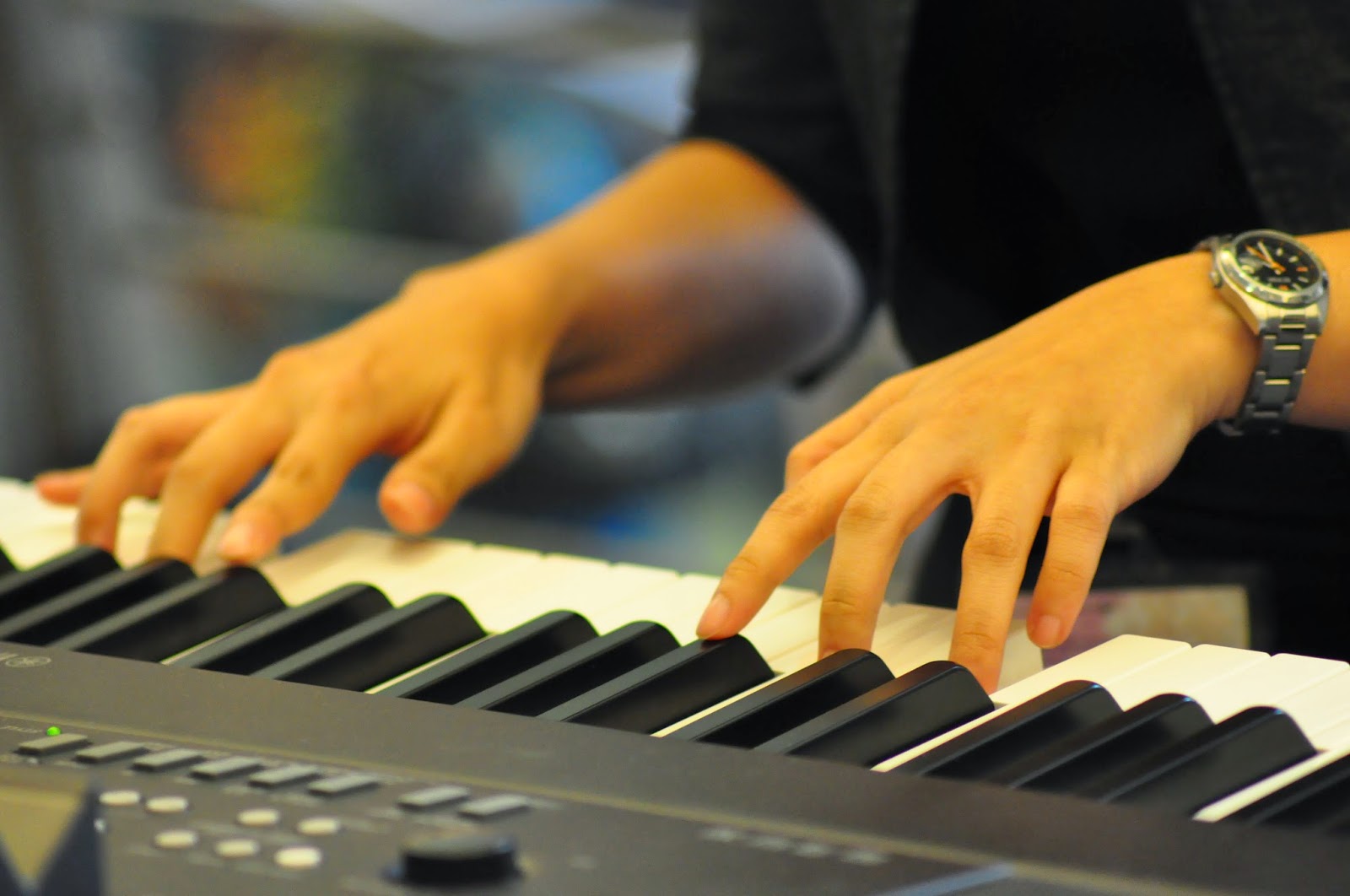 Pak Faezal sedang berlatih Piano di lokasi konser