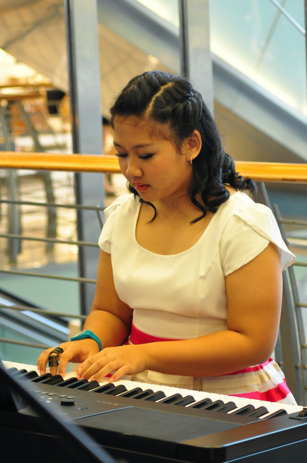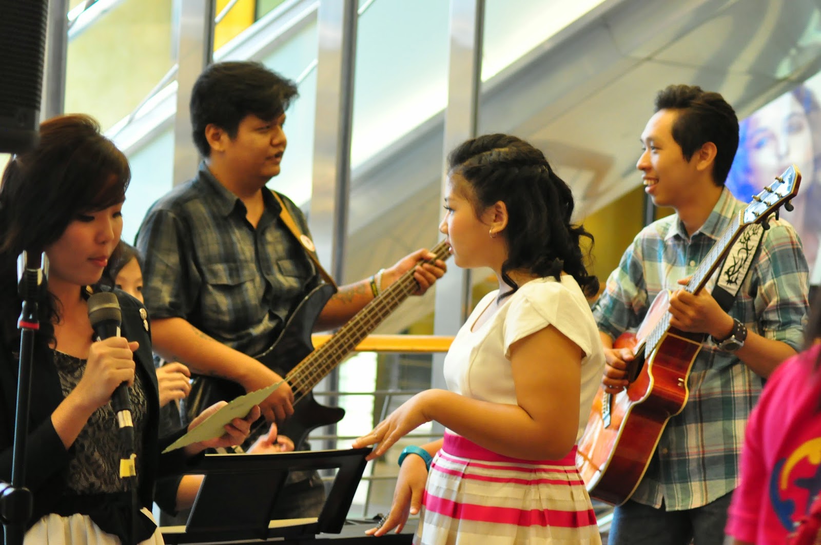 Miss Stephani membawakan lagu Time Travel Theme (OST Secret) dan Sweet Child O mine. Karena orangnya kecil, banyak pengunjung Mal yang mengira Miss Stephani ini muridnya loh.. Upsss