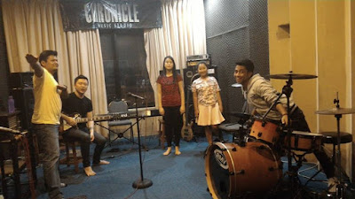 kakak-kakak guru juga ikut latihan loh guys ... mereka akan menutup acara konser nanti dengan epic dengan lagu "Celebrate" by The Lake andalan mereka. Dengan Kak Indra sebagai Vokal, Eka sebagai Bassis, Albert sebagai gitaris Andrew sebagai Keybordis dan Yosua Sebagai Drummer walaupun di dalam foto ini kak Yosua gak keliatan hi.,hi..hi